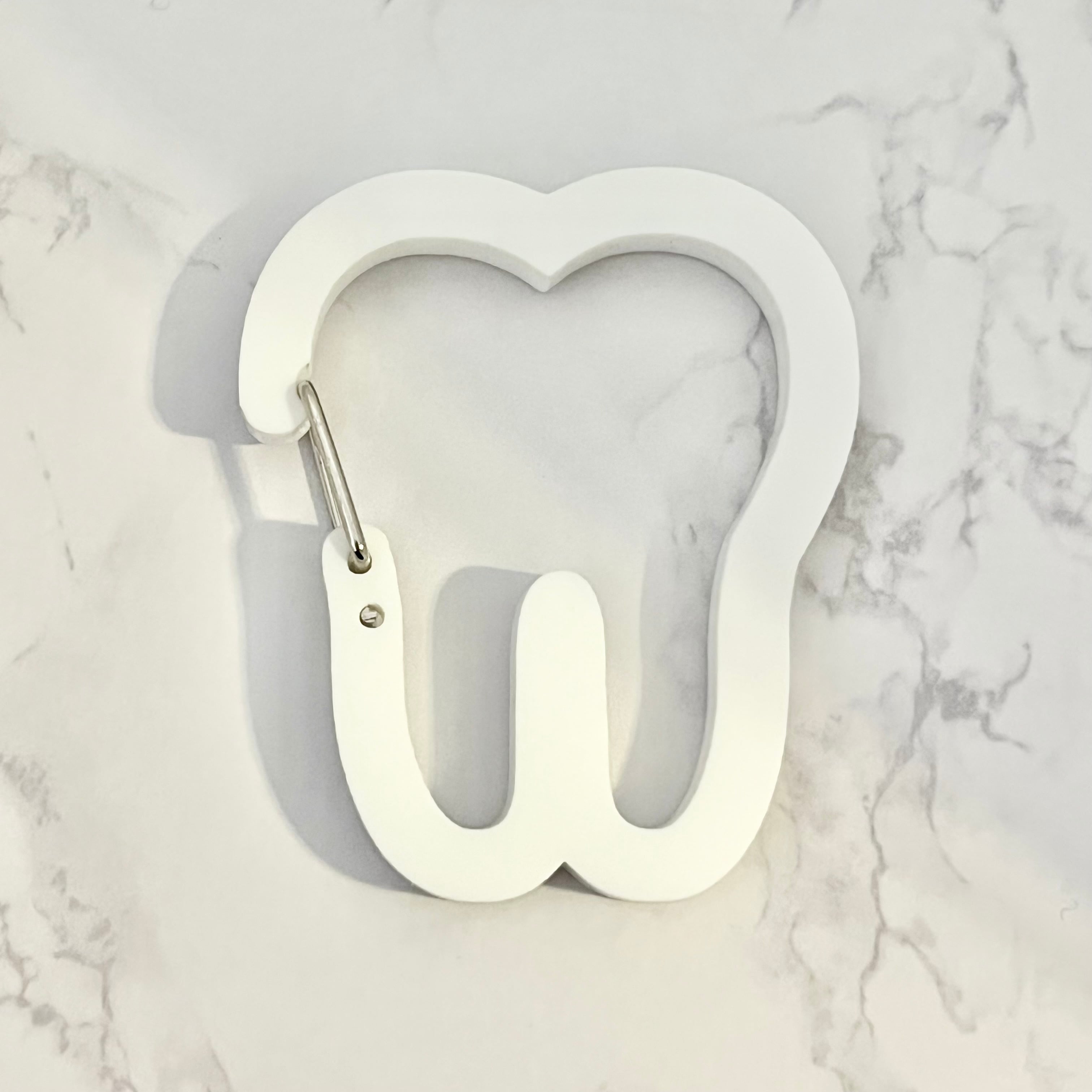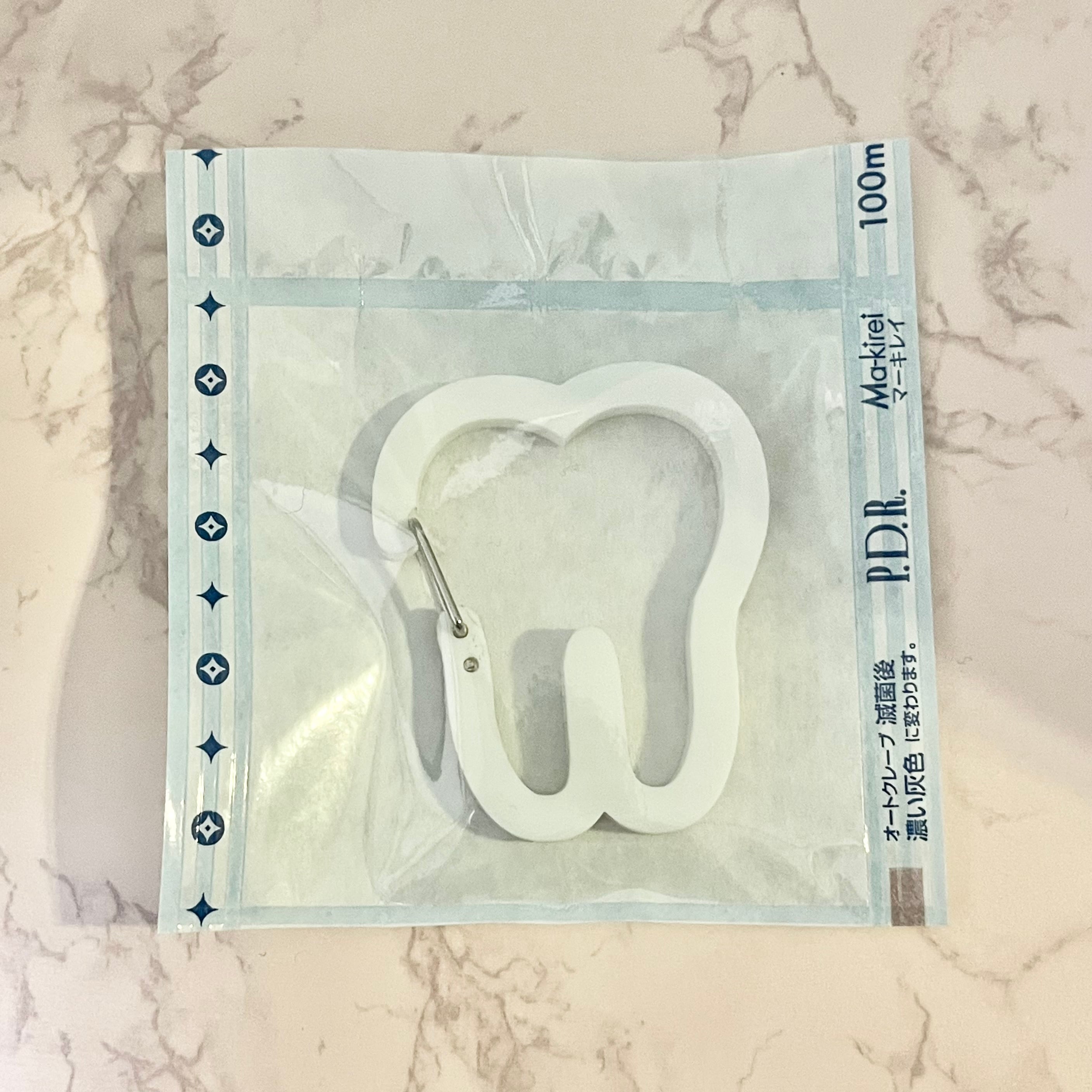 コロっとした歯の形のアクリルカラビナです