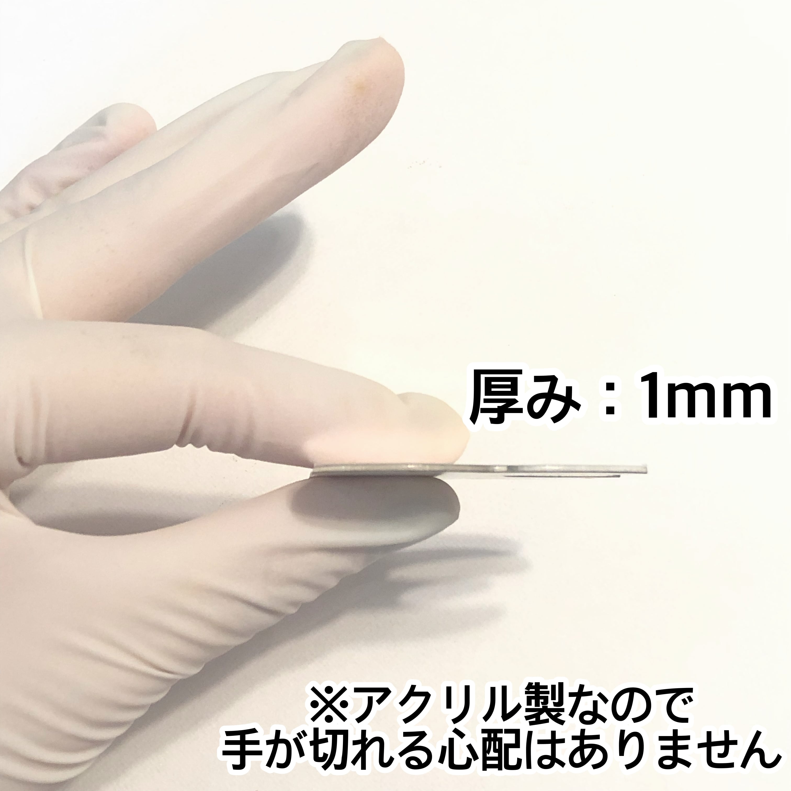 アクリル製なので断面で指を切る心配はありません!